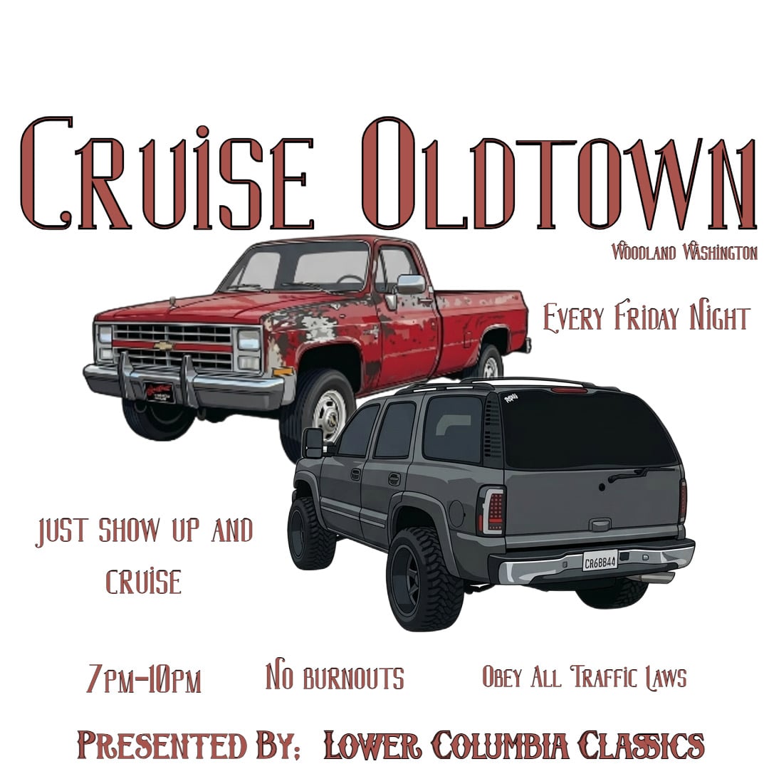 Kids & FamilyEvery Friday cruise old town woodland!! Show up have fun stop in to local businesses and see cool cars!!