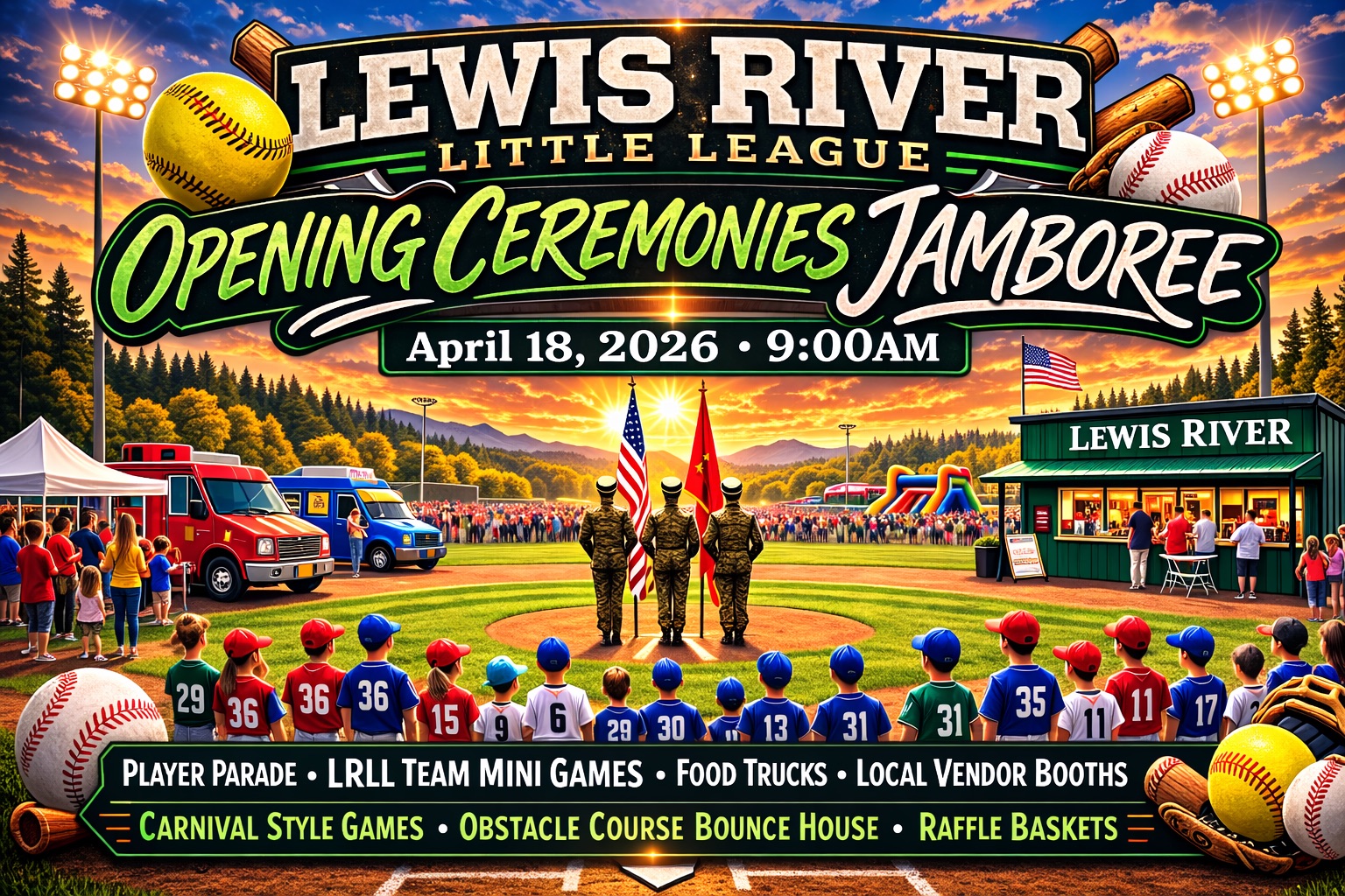 ⚾ Lewis River Little League Opening Ceremonies Jamboree 🥎 Join us as we kick off the 2026 Lewis River Little League season with a fun-filled Opening Ceremonies Jamboree celebrating our athletes, families, and community! The morning begins as our players arrive in their team uniforms and gather with their teammates to prepare for the ceremony....