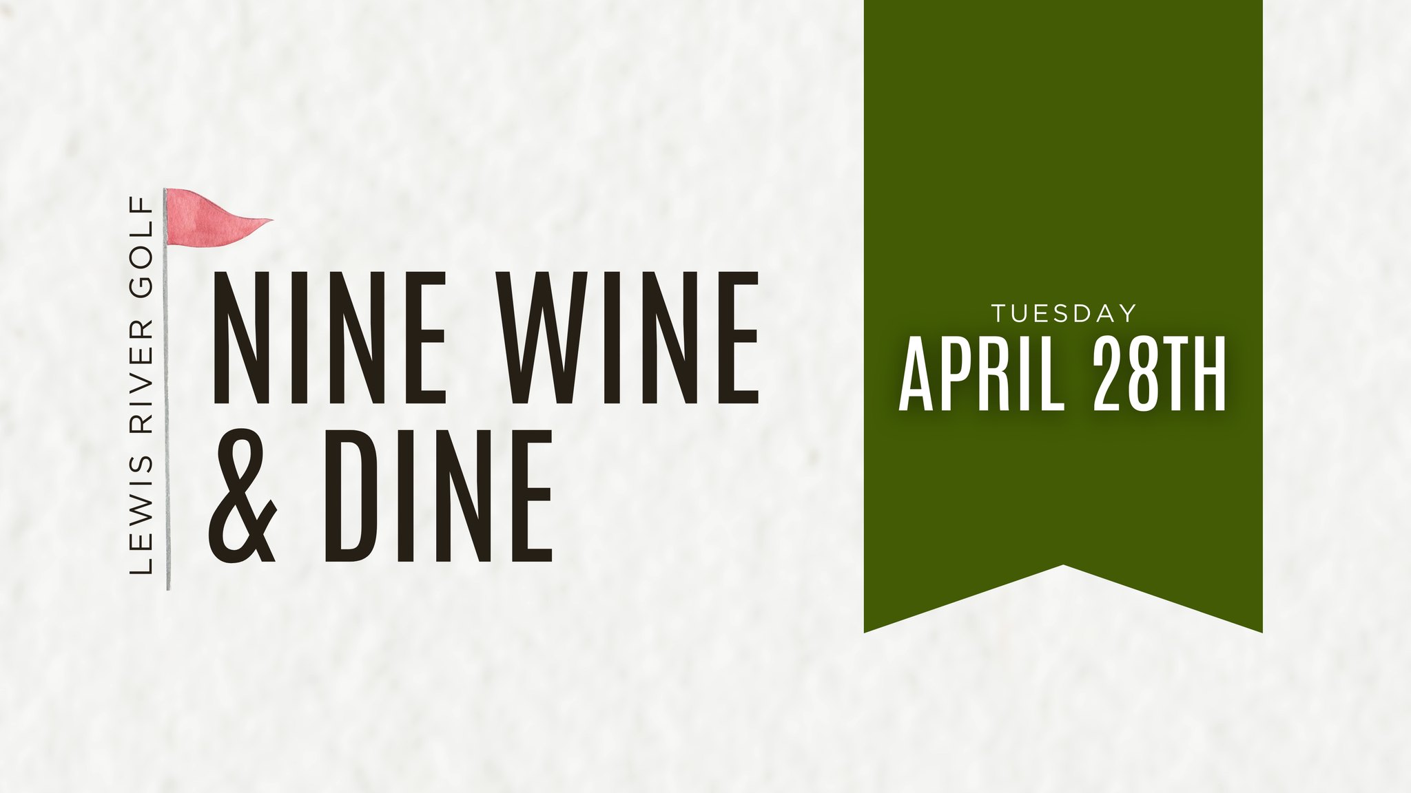 Join us at the Golf Course for April’s Nine Wine and Dine Event! 9 holes of golf with cart 3 wine tastings Glass of wine Snack box to fuel your game Buffet dinner featuring strawberry salad, focaccia bread, chicken pesto pasta & dessert 5:00pm Registration and wine tasting 5:30pm Shotgun start Dinner after golf Don’t... |